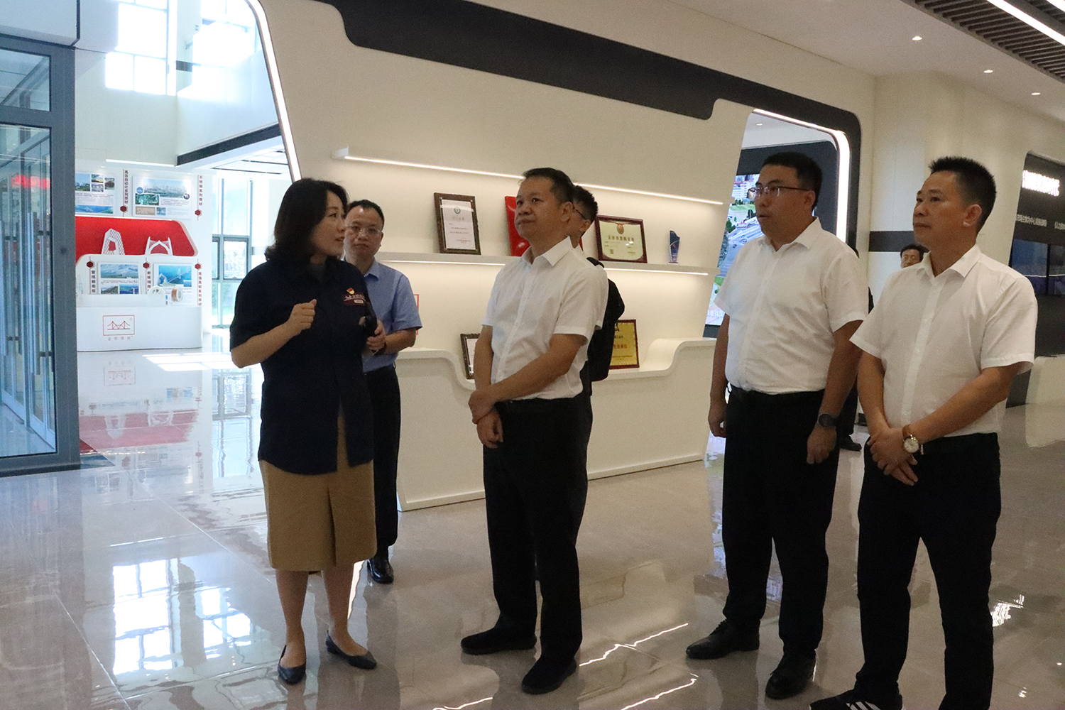 7月17日上午,防城港市副市长禤东一行走进金桥科技公司参观调研。集团党委副书记李红梅接待。